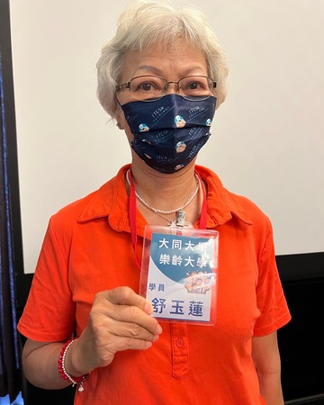 新生舒玉蓮說,她一直想來大同的樂齡大學,女兒趁她不在台灣幫忙報名並且順利抽中,傳照片給她說:「媽媽,這是你的生日禮物」,雖然比生日晚一點,但是遲來的驚喜讓她很感動,「終於如願!」