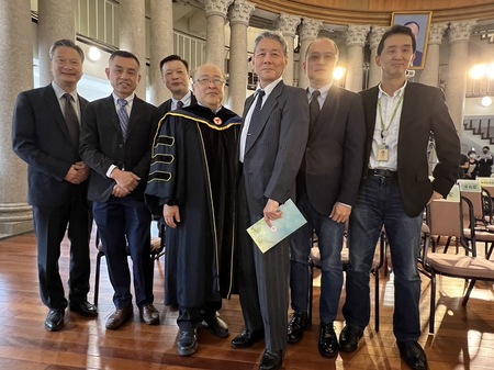 緯創資通副董事長黃柏漙21日(五)獲頒大同大學名譽設計學博士學位。黃柏漙致詞時表示,「接受這份殊榮,很惶恐」,感謝母校教育。他笑說當年學設計好像「不學無術」。但設計思考、方法論甚至日文、機械都學,不只一項專長,這與近年企業推動「多元學習」不謀而合。